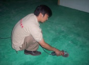 1.打磨处理地面(无尘打磨机) 1.打磨处理地面(普通打磨机) 1.打磨处理地面(小型打磨机) 2.涂刷封闭底漆.增强油漆附着力 3.批刮环氧腻子 4.打磨,清洁 5.涂刷色漆 6.涂刷罩面清漆.增强漆面硬度 1.(保持地面干燥无油污,切记不能用水冲洗或拖把拖地)打磨地面,然后清扫、吸尘